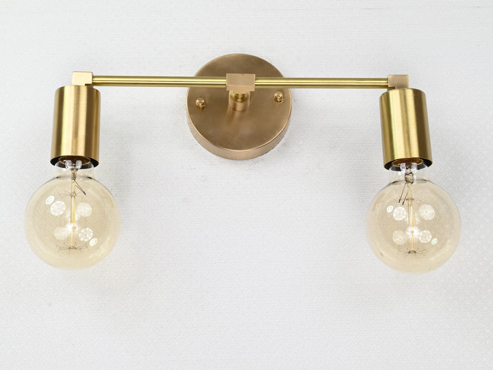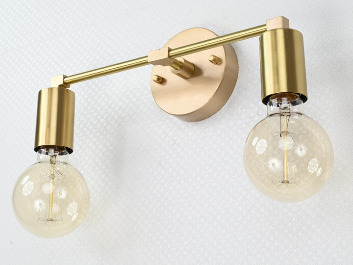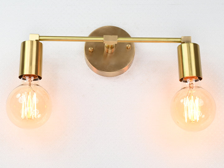 Contemporary Brass Twin Light Wall Sconce | Customizable Minimal Design Fixture for Modern Spaces - 32531
