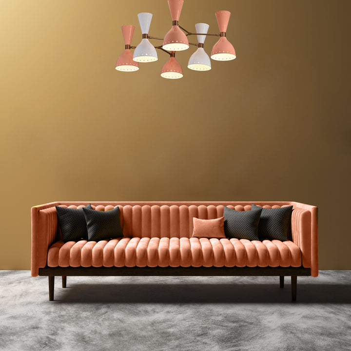 Modern 10-Light Chandelier – Color Blocked Coral, White & Brass Double Cone Ceiling Fixture - 32223