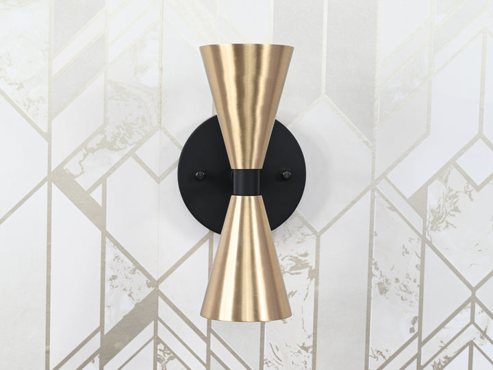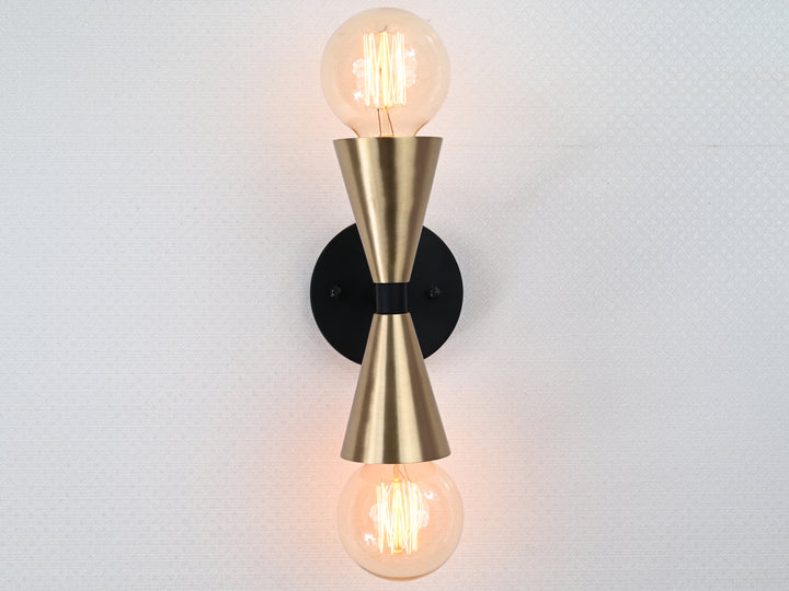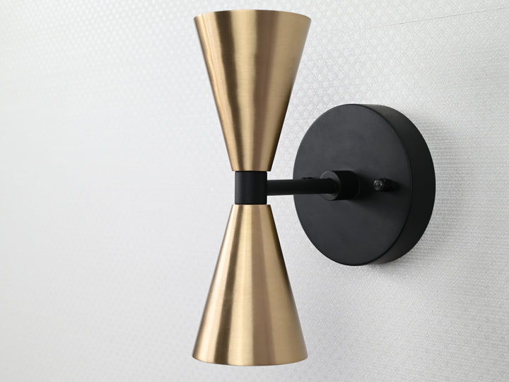 Mid-Century Modern Brass Wall Sconce | Double Cone Light | Customizable Handcrafted Fixture - 32501