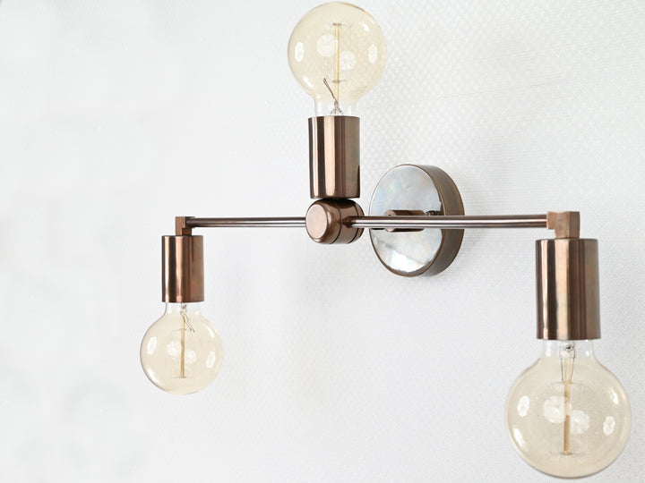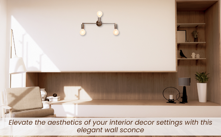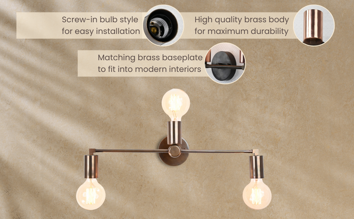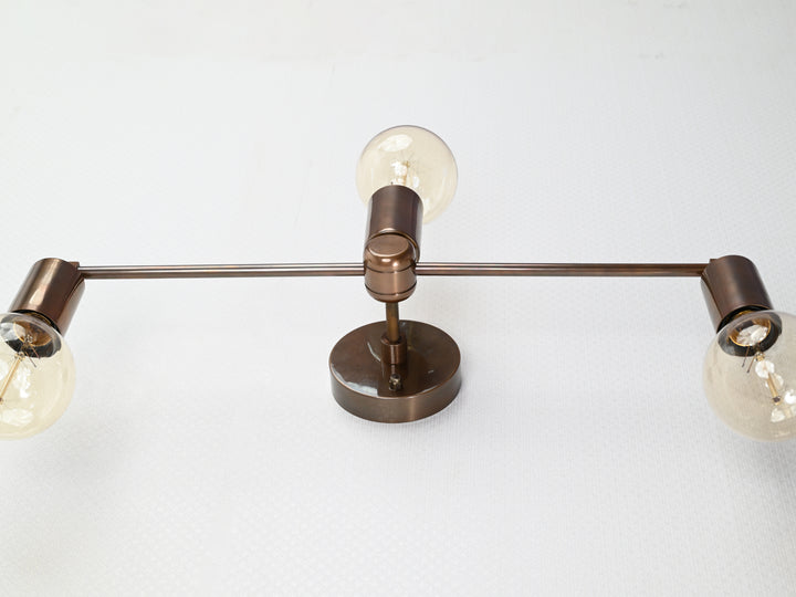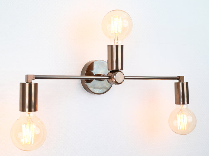 Sleek and architecturally refined, this three-light wall sconce offers a bold yet balanced aesthetic for contemporary interiors. Crafted from high-quality brass with a deep antique finish, it features a clean, linear silhouette with a central upward-facing bulb framed by two extended horizontal arms. The result is a sculptural composition that merges symmetry with a modern edge. Measuring 50.8 cm (20 inches) in width and 15.3 cm (6 inches) in height, this fixture delivers ambient, multidirectional lighting perfect for bathrooms, vanities, or hallway features. The understated elegance of its finish complements industrial, mid-century, or transitional settings. Whether styled solo or as part of a set, this piece enhances your space with warmth, precision, and timeless sophistication.