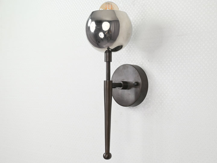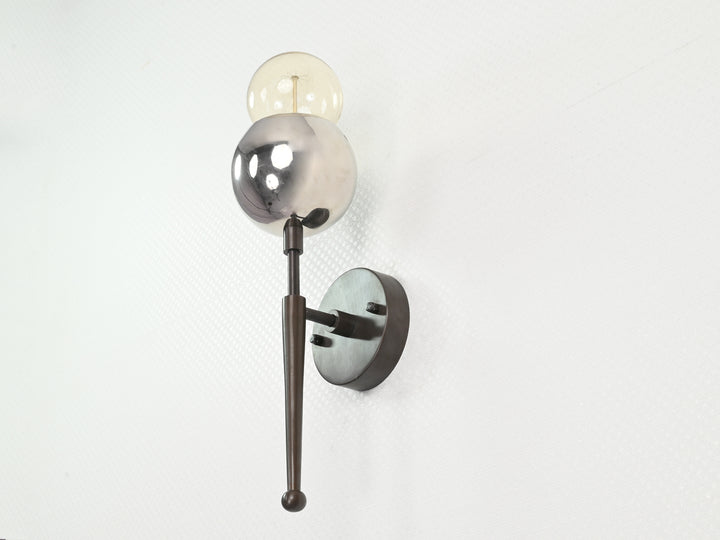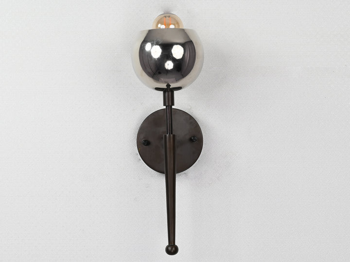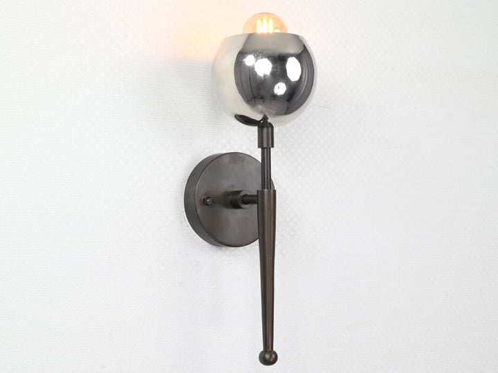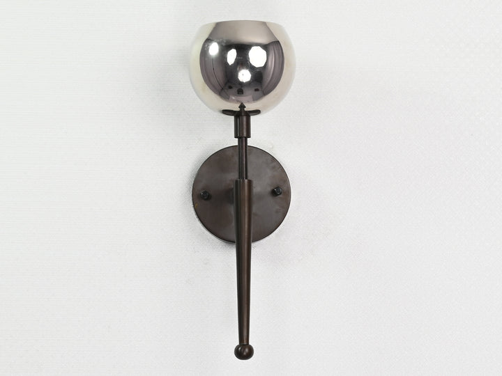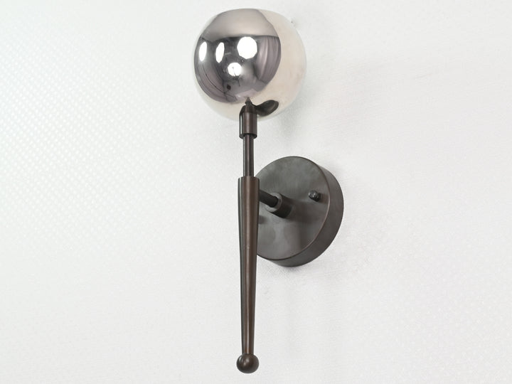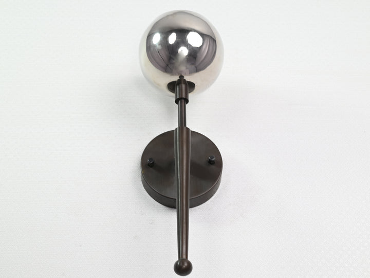 Sleek Mid-Century Modern Brass Wall Sconce | Customizable Globe Light Fixture for Chic Interiors - 32525