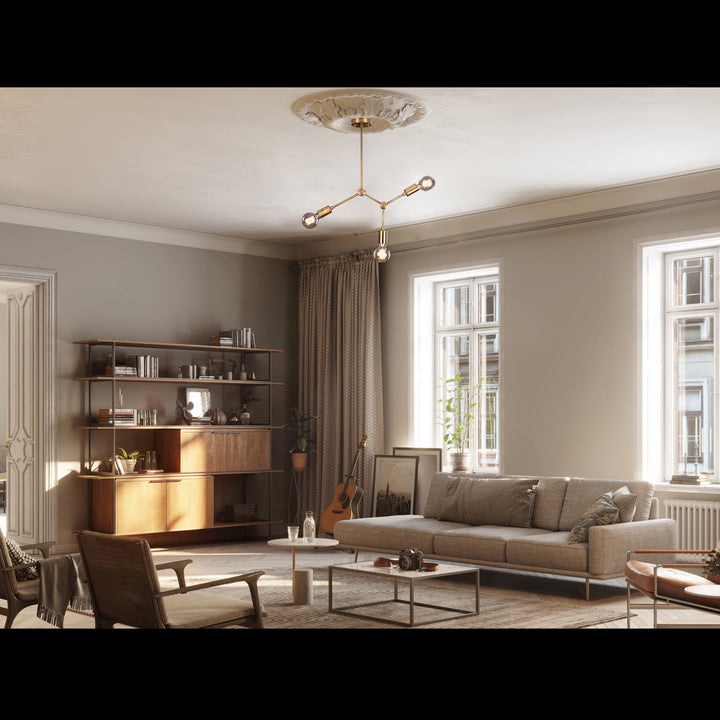 Add a touch of modern elegance to your space with this stylish brass ceiling light fixture. Expertly crafted from high-quality brass, this contemporary piece features a sleek geometric design that holds three lights, evenly spaced for balanced illumination. Measuring 61.6 cm (24.3 inches) in height and 50.5 cm (19.9 inches) in width, it offers a striking yet minimalist presence ideal for living rooms, dining areas, or entryways. Its brushed brass finish and clean lines make it a versatile addition to various interior styles, from industrial chic to mid-century modern.