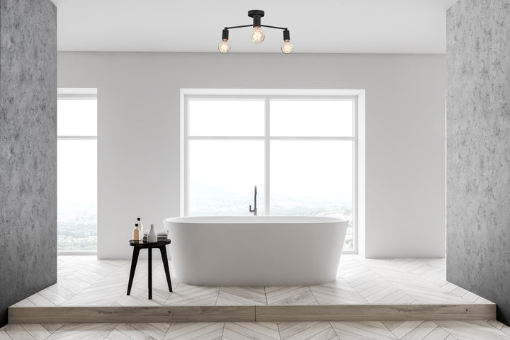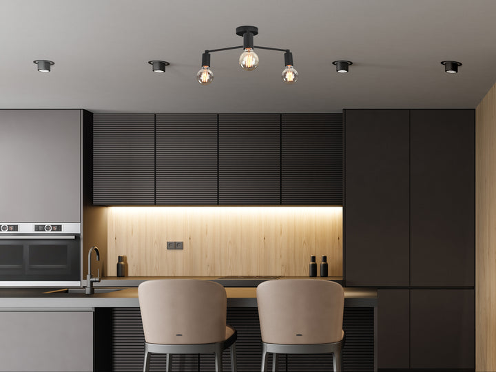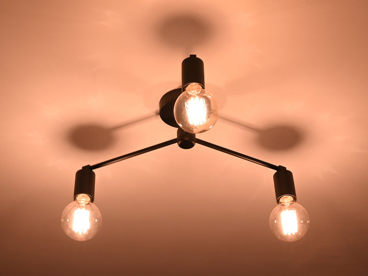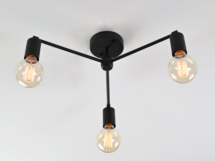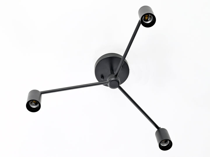 Compact 3-Light Black Sputnik Chandelier – Modern Flush Ceiling Fixture with Rotating Arms - 32172