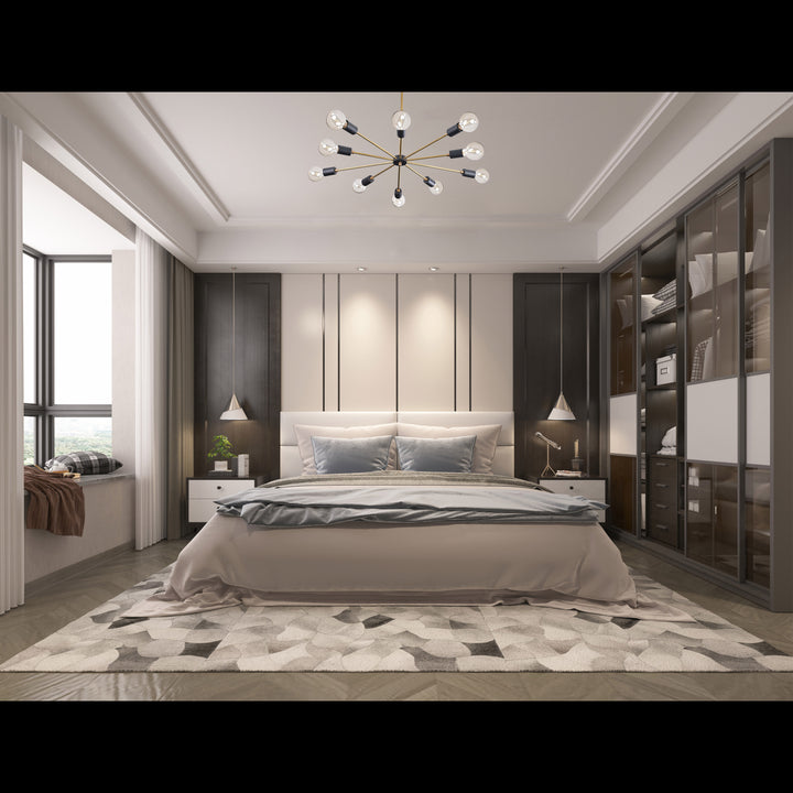 Radiant 12-Light Sputnik Chandelier – Black & Brass Mid-Century Modern Ceiling Fixture - 32198