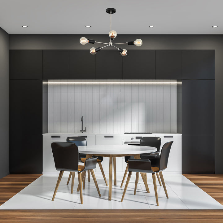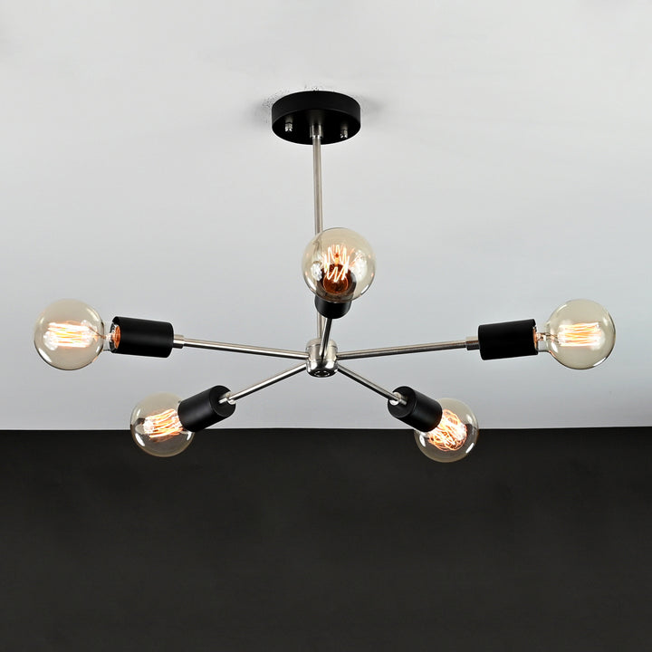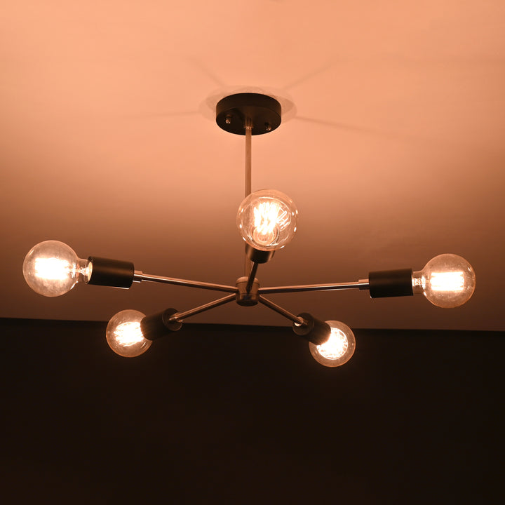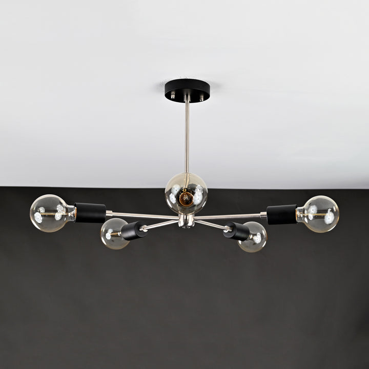 Contemporary 5-Light Chrome Sputnik Chandelier – Minimalist Ceiling Fixture with Globe Bulbs - 32176