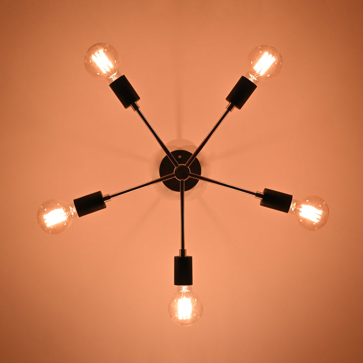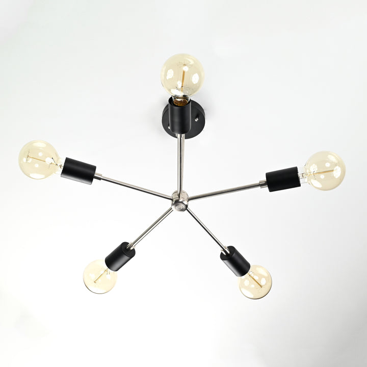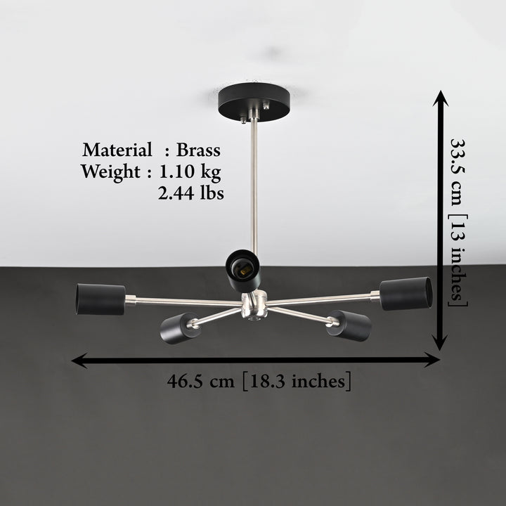 Elevate your interior with this meticulously crafted ceiling light fixture, designed to embody modern sophistication and timeless elegance. Constructed from premium brass, it features a striking starburst configuration with five gracefully extended arms radiating from a central hub. The minimalist form makes it a statement piece in any contemporary setting. Measuring 46.5 cm (18.3 inches) in width and 33.5 cm (13 inches) in height, it offers a harmonious balance of scale and presence. Accommodating five light sources, this fixture delivers both visual impact and ample illumination, perfect for enhancing the ambiance of living rooms, dining areas, or workspaces with effortless style.