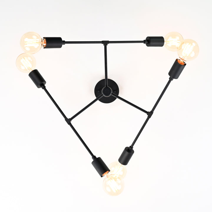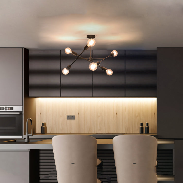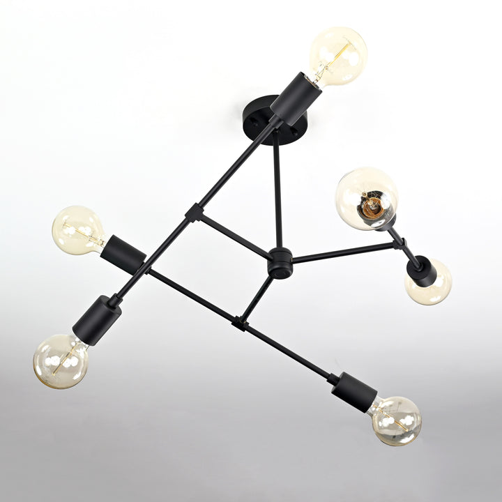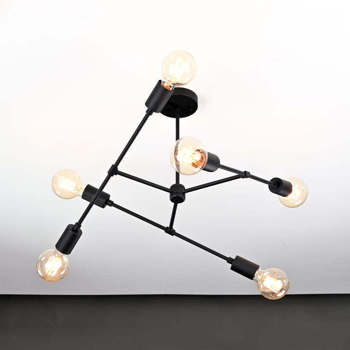 Modern 6-Light Black Chandelier – Asymmetrical Ceiling Fixture with Dual Globe Heads - 32197