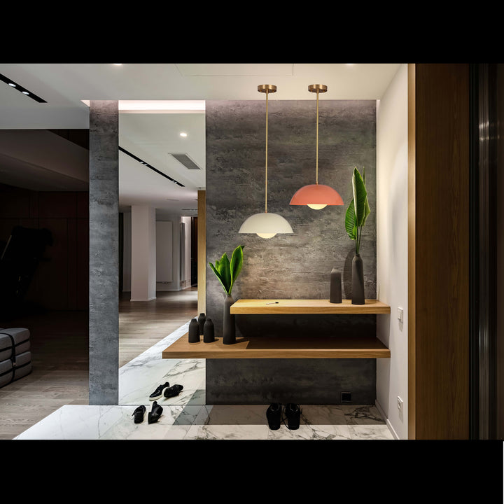 This set of two pendant lamps features a modern dome-shaped design with a clean, minimal profile. Each piece includes an inner globe diffuser that casts a soft, even light—perfect for creating a cozy atmosphere, especially in darker rooms. The lamps are suspended from a slim rod attached to a round ceiling mount, offering a sleek, balanced look. With a 12-inch diameter and a total height of 27 inches, they’re ideal for dining spaces, kitchen islands, or hallways. These fixtures not only provide functional lighting but also add a refined, contemporary touch to any interior.