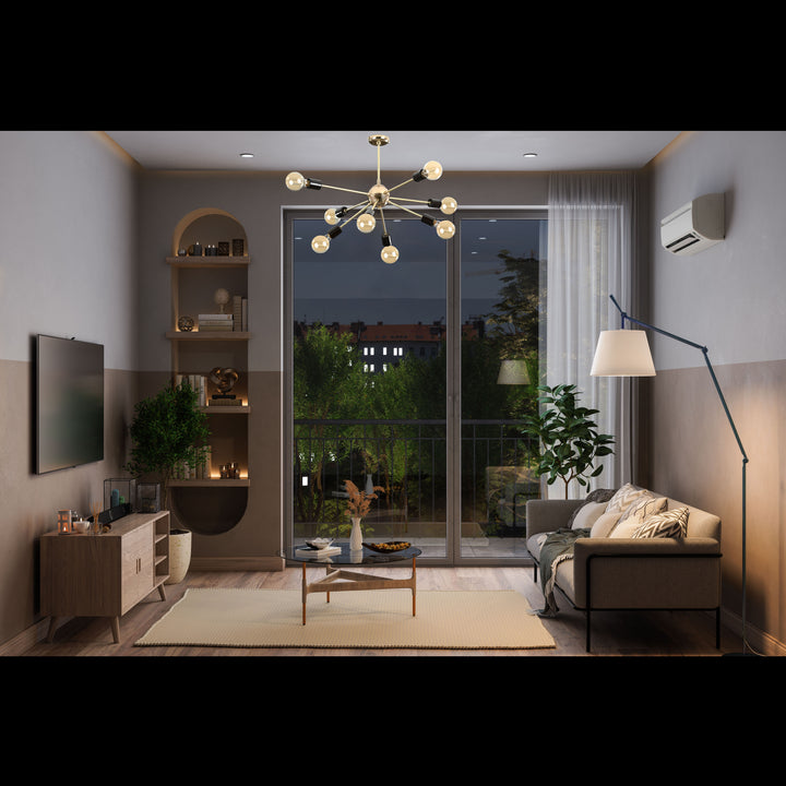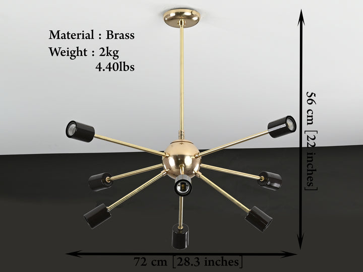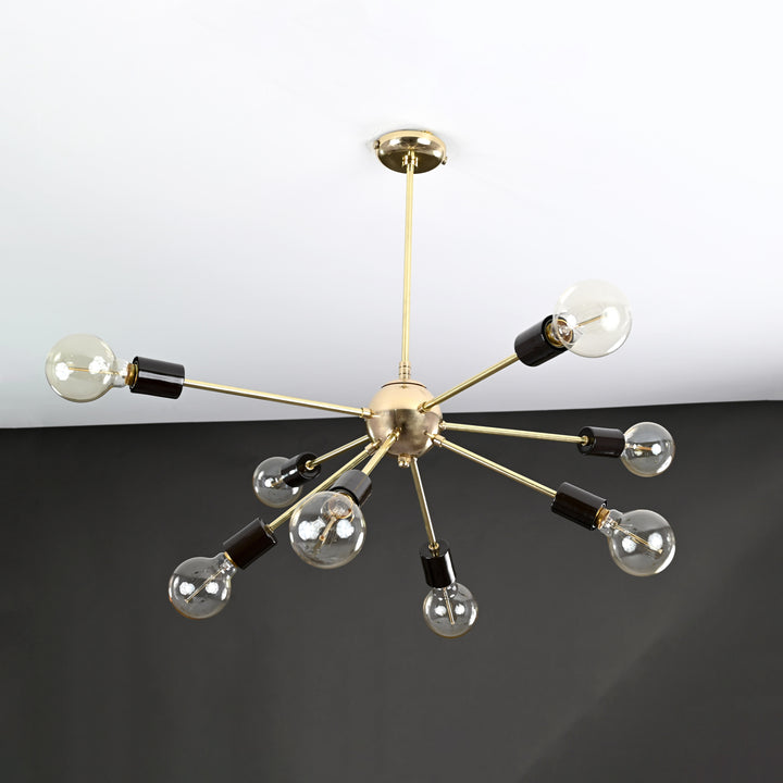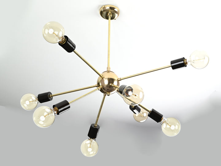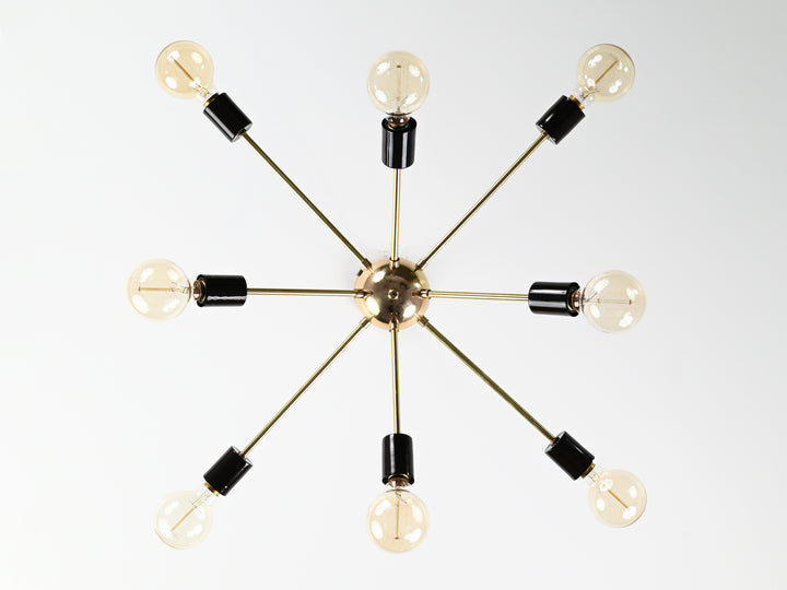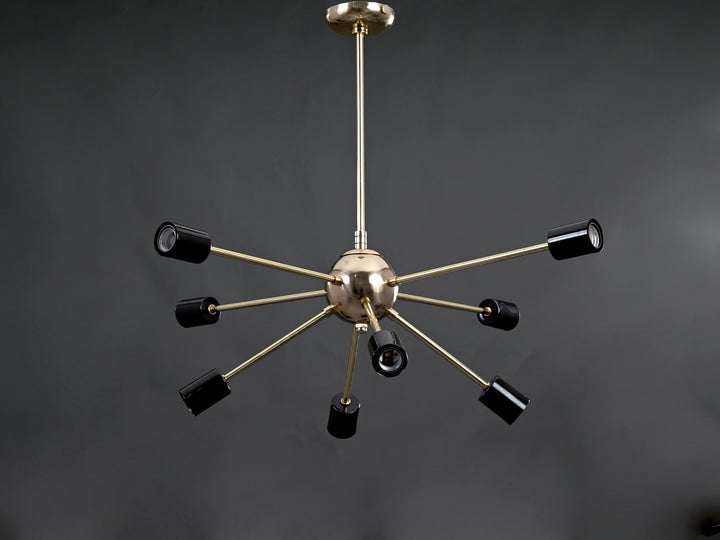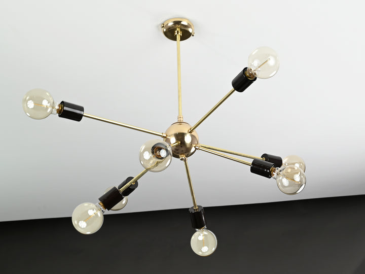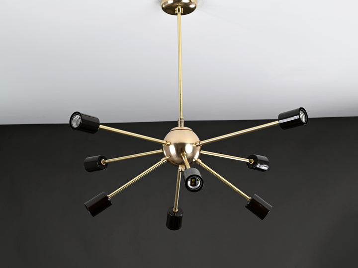 Mid-Century 8-Light Brass & Black Sputnik Chandelier – Modern Minimalist Ceiling Light - 32163