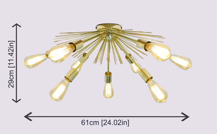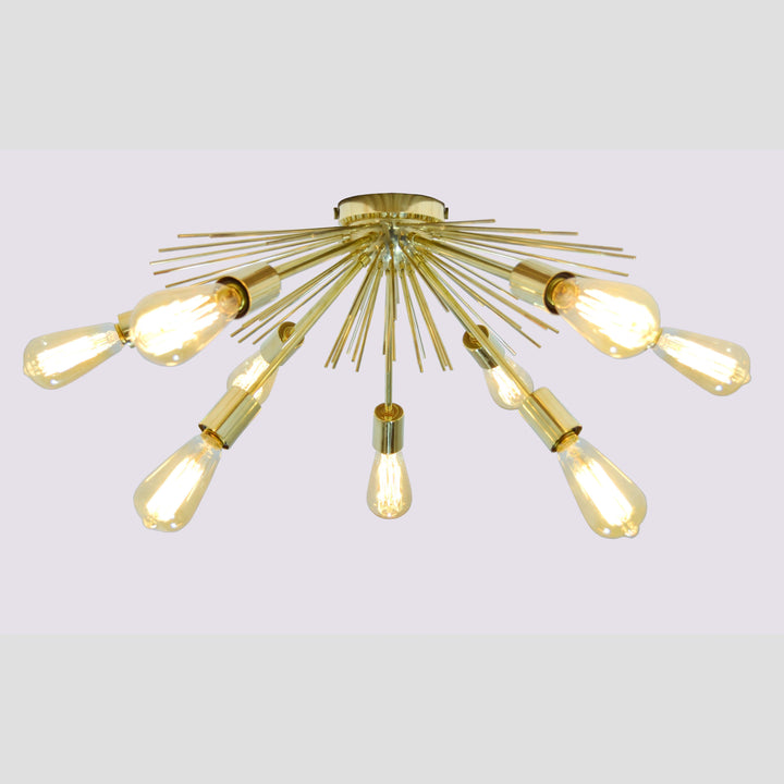 Modern Brass Flush Mount Chandelier | Custom Ceiling Light | Mid-Century Uplighting Fixture - 32459