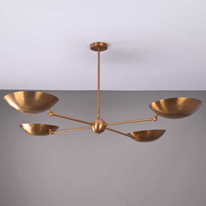 4-Light Uplight Brass Chandelier – Custom Mid-Century Modern Sculptural Ceiling Light | & Handmade - 32337