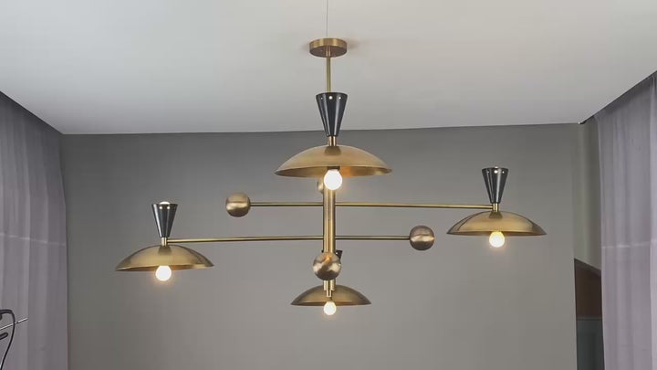 Modern Brass Chandelier – Customizable Mid-Century Modern Ceiling Light Fixture - 32463