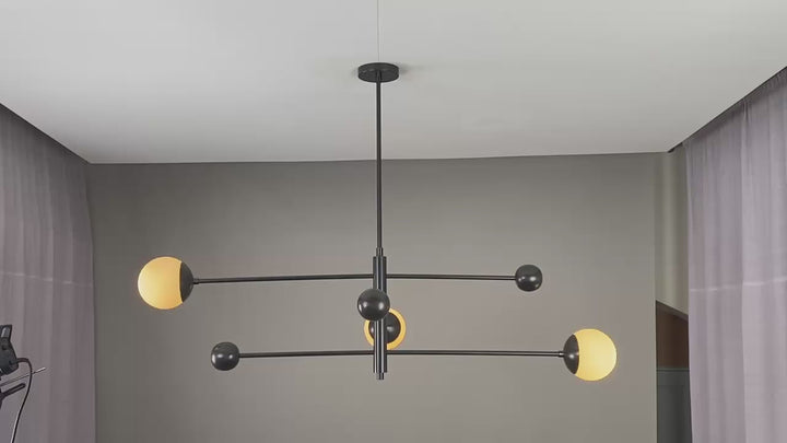 Elevate your interior with our Modern Black Globe Chandelier, a sculptural fusion of minimalism and industrial elegance. Crafted in premium blackened brass, this lighting fixture features sleek geometric arms and frosted glass globes that cast a soft ambient glow—creating a cozy yet bold presence in any space.