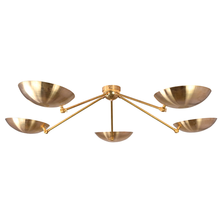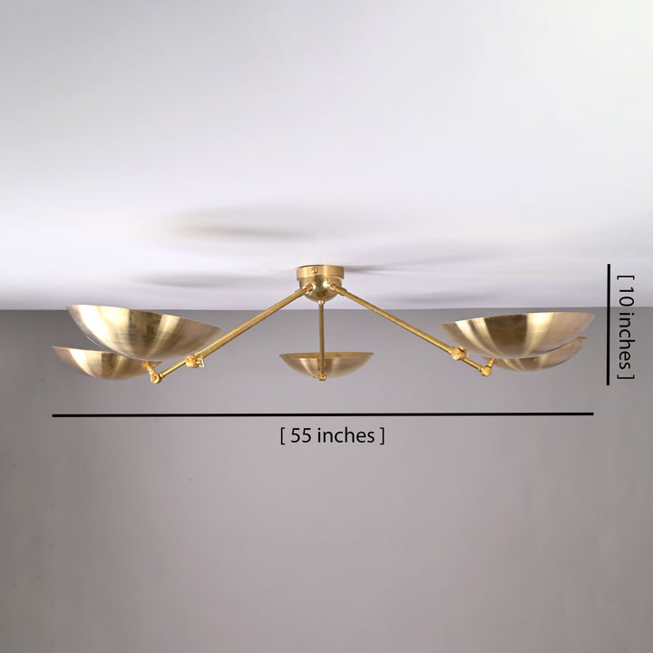 Bring timeless elegance and modern craftsmanship into your space with this handcrafted Flush Mount Brass Chandelier, designed to illuminate with a warm, ambient uplighting effect. Featuring 5 upward-facing solid brass bowls, this minimalist statement piece effortlessly blends into modern, industrial, mid-century, and luxury interiors.