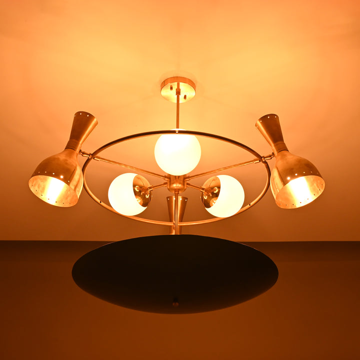 Mid-Century Custom Brass Chandelier – Handmade Ceiling Light Fixture - 32397