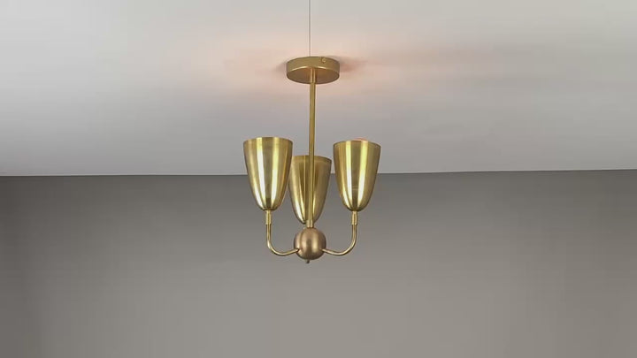 Raw Brass 3-Light Cone Pendant | Mid-Century Modern Flush Mount Ceiling Light | Brass Cone Chandelier Fixture 32475