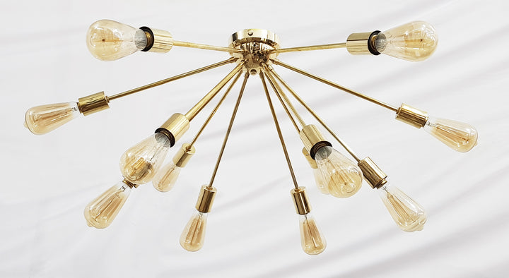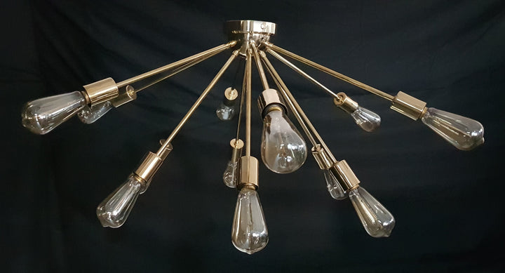 Modern Brass Flush Mount Chandelier | Mid-Century Ceiling Light | Customizable Sputnik Light Fixture Handmade Lighting - 32103