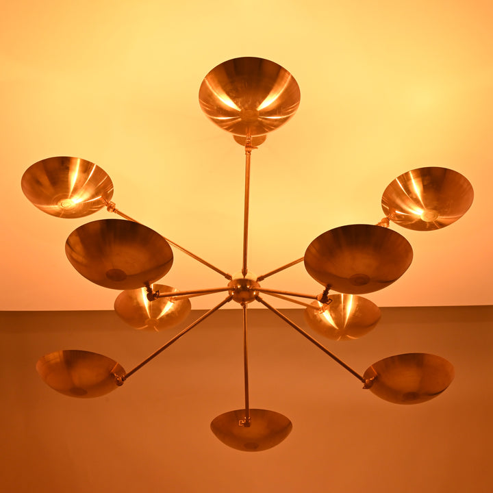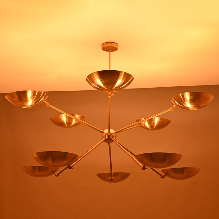 ✨ Elevate your space with this modern handcrafted brass chandelier, designed with elegance, scale, and function in mind. This stunning centerpiece features 10 upward-facing brass bowls, offering beautiful uplifting light that gently reflects off the ceiling and fills the room with warm ambient illumination.
