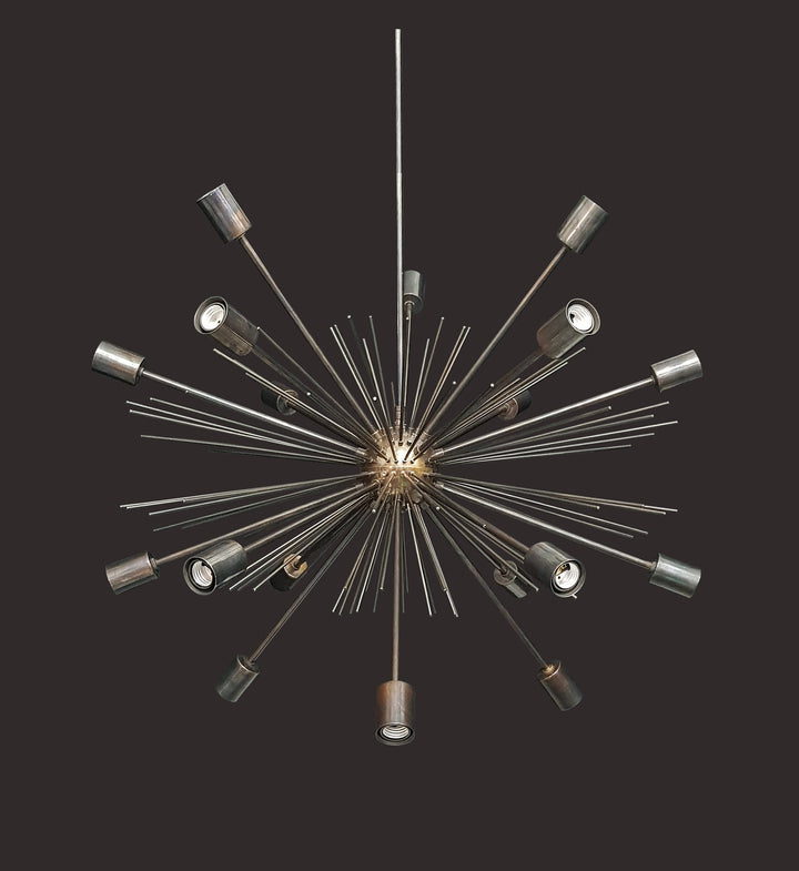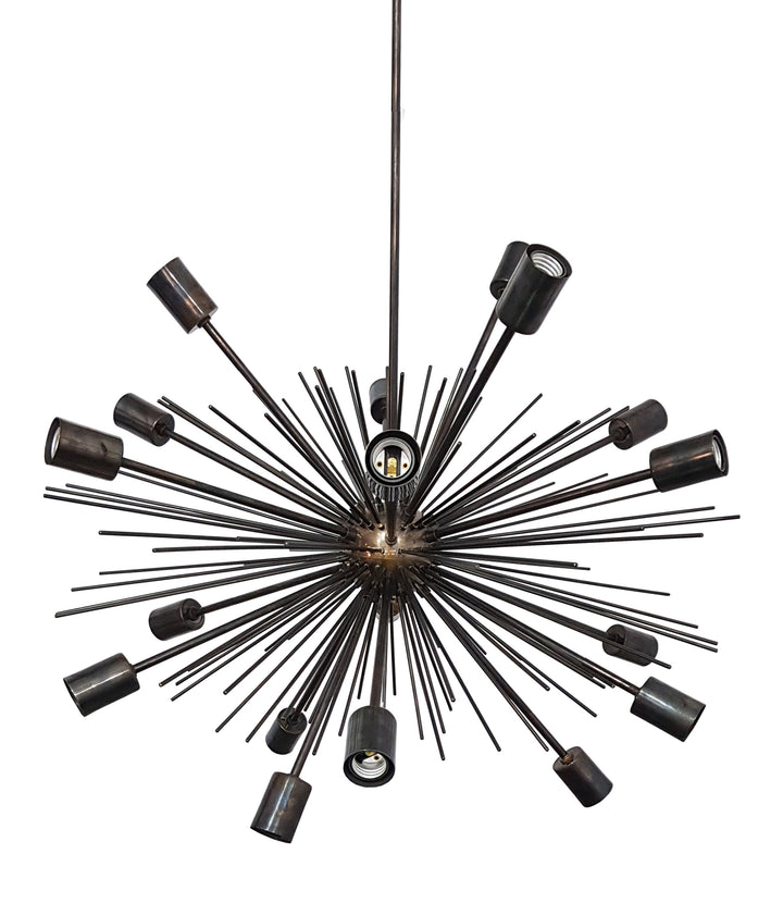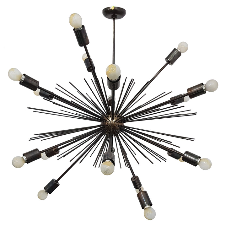 Starburst Urchin Chandelier Blackened Brass Finish, Mid Century Style Hanging Lamp Made of Full Brass, Ceiling Lamp 18 Lights
